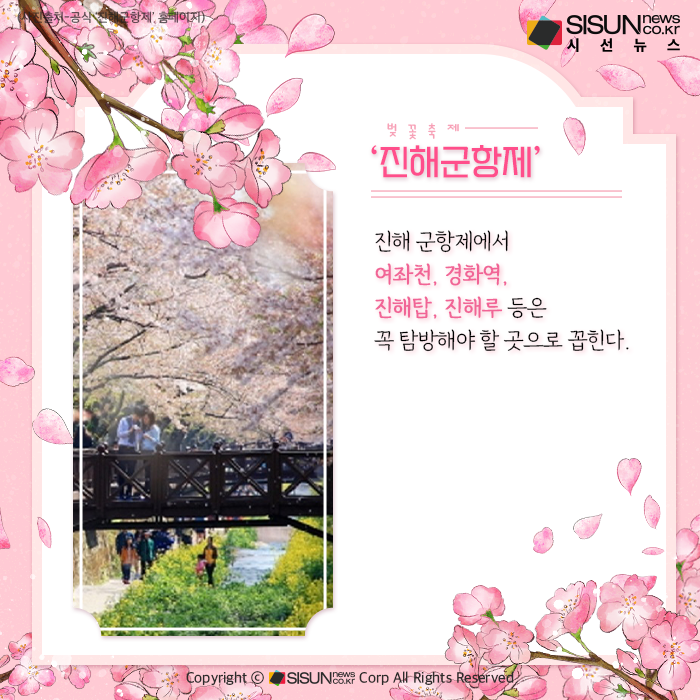 시선뉴스=박진아 기자 / 디자인=김선희 proㅣ봄기운을 듬뿍 느낄 수 있는 벚꽃이 올해도 어김없이 우리 곁을 찾아왔다. 4월 초반부로 들어가서는 전국 어디서든 만개한 벚꽃을 감상할 수 있을 것으로 예상된다. 오늘은 국내 최대 벚꽃축제인 ‘진해군항제’를 랜선으로 떠나보려고 한다.
