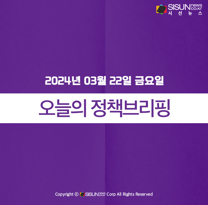 시선뉴스=양원민 기자 | 대한민국 정부 19개 부처에서는 추진하는 행정과 정책을 담은 보도 자료를 배포한다. 2024년 03월 22일 오늘의 정책브리핑을 소개합니다.