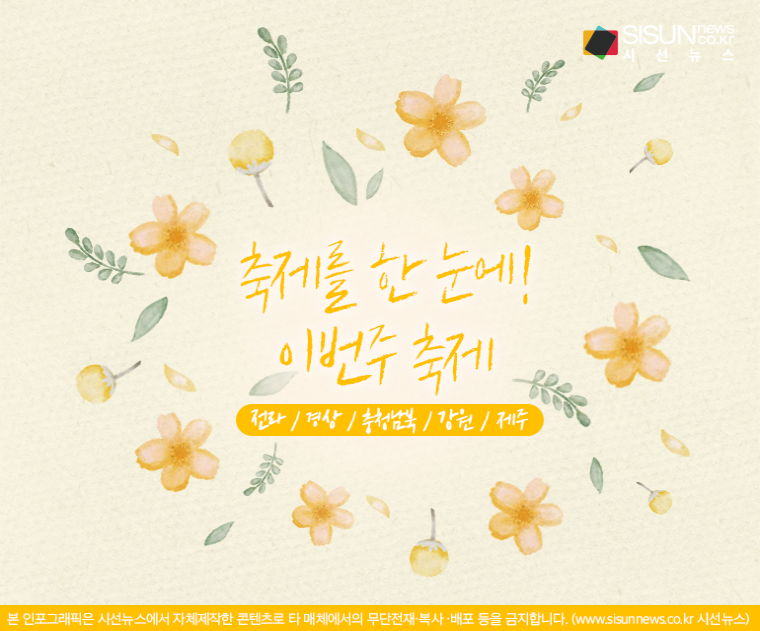 - 축제를 한 눈에! 이번 주(04.05.~04.11.) 축제 일정 ‘전라/경상/충청남북 및 강원/제주’ [인포그래픽]