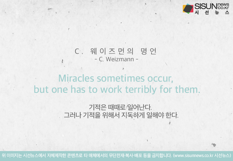‘기적은 때때로 일어난다. 그러나 기적을 위해서 지독하게 일해야 한다.’ <C. 웨이즈먼>