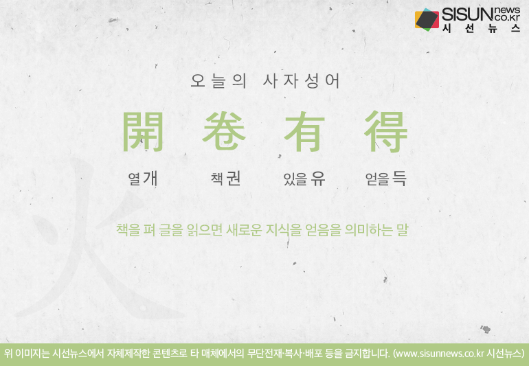 오늘의 사자성어 개권유득[開卷有得]입니다.