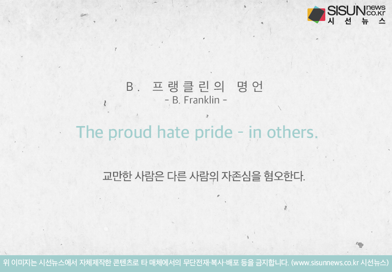 ‘교만한 사람은 다른 사람의 자존심을 혐오한다.’ <B. 프랭클린>