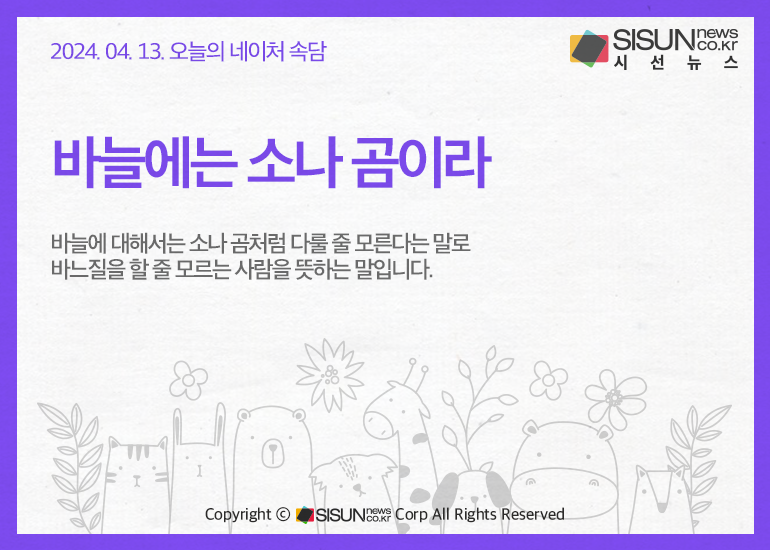 오늘의 네이처속담은 <바늘에는 소나 곰이라>입니다.