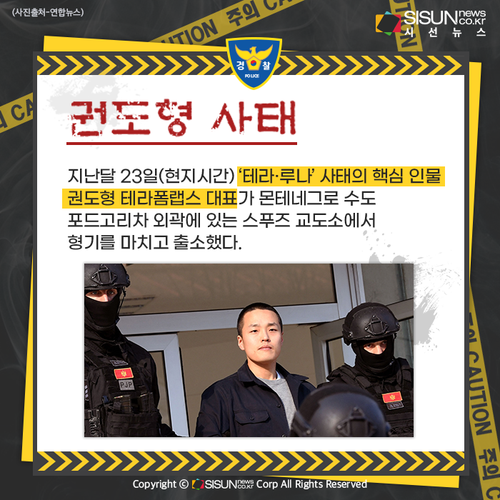 시선뉴스=정혜인 기자 / 디자인=김선희 proㅣ‘테라·루나’ 사태의 핵심 인물 권도형 테라폼랩스 대표가 지난달 23일(현지시간) 몬테네그로 수도 포드고리차 외곽에 있는 스푸즈 교도소에서 형기를 마치고 출소했다. 권 씨는 출소 후 경찰청에서 조사받은 뒤 외국인수용소로 이송됐고, 이곳에서 한국 송환과 관련한 대법원의 최종 결정을 기다리게 됐다.