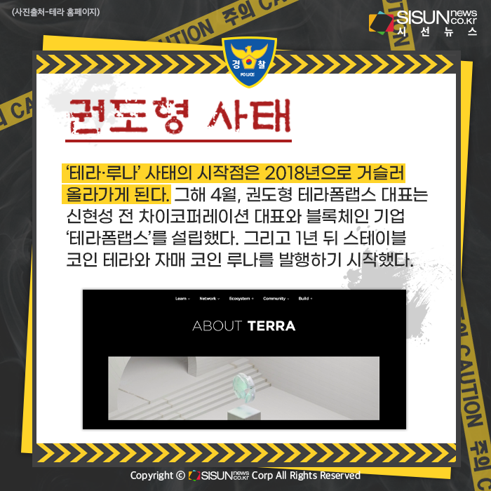 ‘테라·루나’ 사태의 시작점은 2018년으로 거슬러 올라가게 된다. 그해 4월, 권도형 테라폼랩스 대표는 신현성 전 차이코퍼레이션 대표와 블록체인 기업 ‘테라폼랩스’를 설립했다. 그리고 1년 뒤 스테이블 코인 테라와 자매 코인 루나를 발행하기 시작했다. 스테이블 코인이란 달러 등 오프라인 화폐와 그 가치가 연동되어 일정한 화폐 가치를 유지하는 것을 목적으로 만들어진 코인을 말한다.