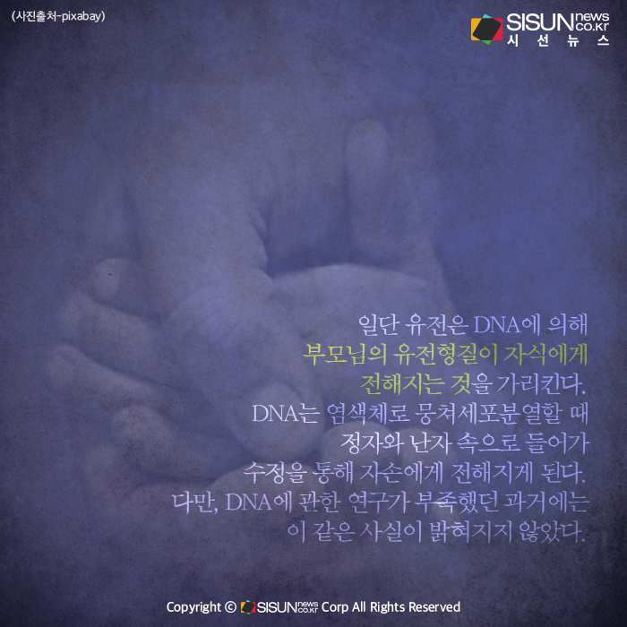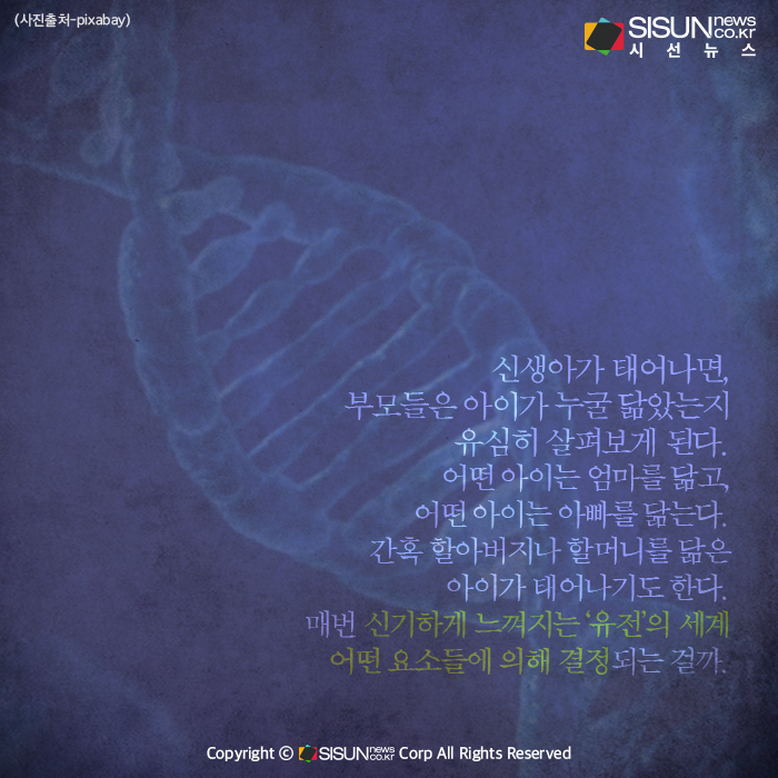시선뉴스=정혜인 기자ㅣ신생아가 태어나면, 부모들은 아이가 누굴 닮았는지 유심히 살펴보게 된다. 어떤 아이는 엄마를 닮고, 어떤 아이는 아빠를 닮는다. 간혹 할아버지나 할머니를 닮은 아이가 태어나기도 한다. 매번 신기하게 느껴지는 ‘유전’의 세계, 어떤 요소들에 의해 결정되는 걸까.