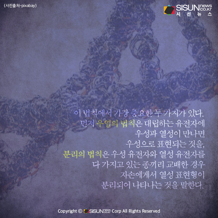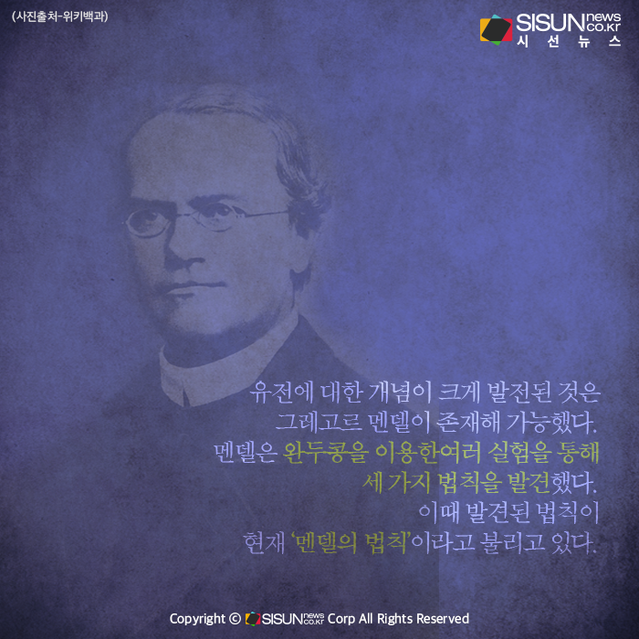 유전에 대한 개념이 크게 발전된 것은 그레고르 멘델이 존재해 가능했다. 멘델은 완두콩을 이용한 여러 실험을 통해 세 가지 법칙을 발견했다. 이때 발견된 법칙이 현재 ‘멘델의 법칙’이라고 불리고 있다.