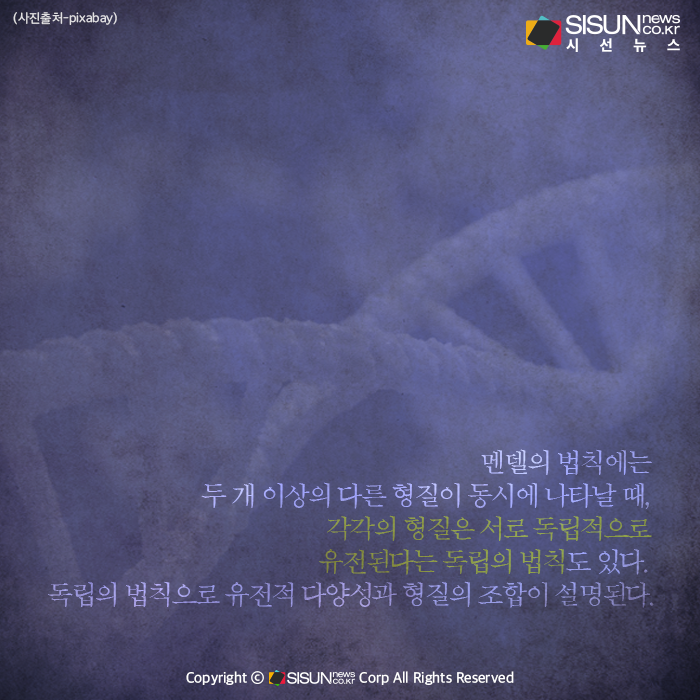 멘델의 법칙에는 두 개 이상의 다른 형질이 동시에 나타날 때, 각각의 형질은 서로 독립적으로 유전된다는 독립의 법칙도 있다. 독립의 법칙으로 유전적 다양성과 형질의 조합이 설명된다.