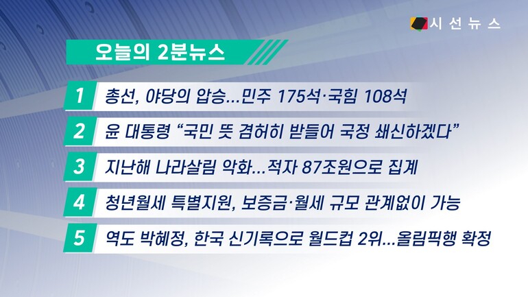 시선뉴스=박대명pro, 정혜인 기자ㅣ2024년 04월 11일 시선뉴스에서 전하는 오늘의 주요뉴스입니다.
