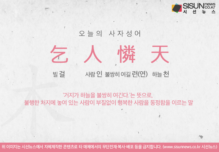 오늘의 사자성어 걸인연천[乞人憐天]입니다.
