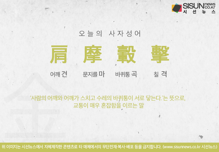 오늘의 사자성어 견마곡격[肩摩轂擊]입니다.