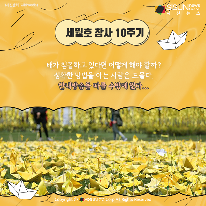 “선내에서는 이동하지 마십시오.” 이날 세월호에서 흘러나온 안내방송이다. 이 안내방송에 따라 승선객은 자리에서 움직이지 않았고, 바로 이 순간의 선택과 행동은 수많은 사망자가 발생하게 되는 원인이 된다. 최소한 살아남으려는 시도조차 하지 못하고 배 안에 갇혀, 비참하게 익사하는 상황이 발생한 것이다.