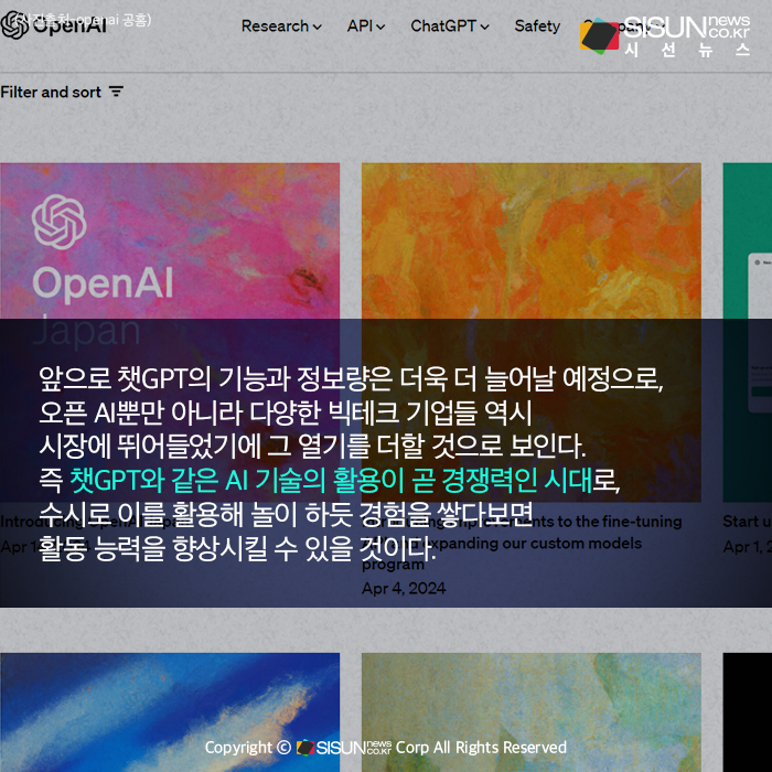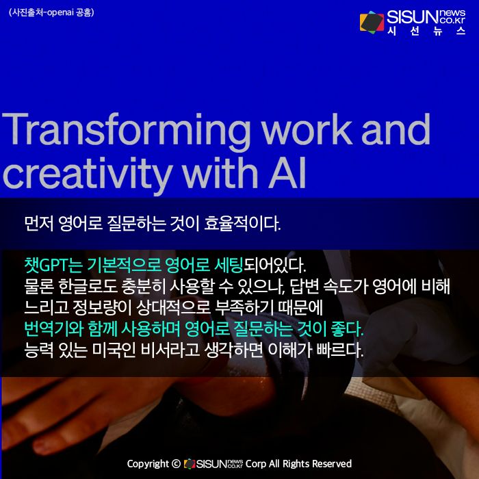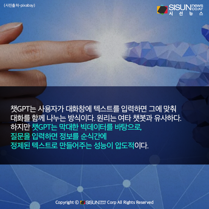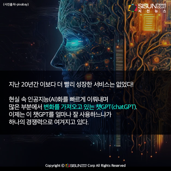 시선뉴스=심재민 기자 | ‘지난 20년간 이보다 더 빨리 성장한 서비스는 없었다’ 현실 속 인공지능(AI)화를 빠르게 이뤄내며 많은 부분에서 변화를 가져오고 있는 챗GPT(chatGPT). 이제는 이 챗GPT를 얼마나 잘 사용하느냐가 하나의 경쟁력으로 여겨지고 있다.
