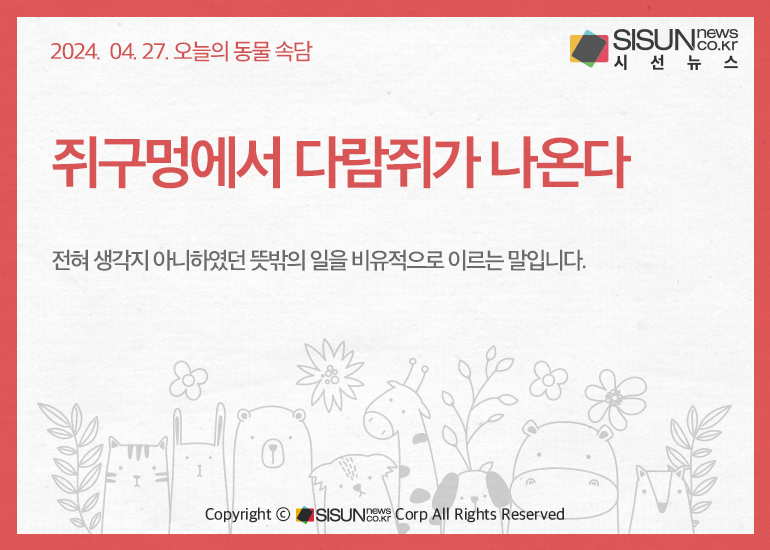 오늘의 네이처속담은 <쥐구멍에서 다람쥐가 나온다>입니다.