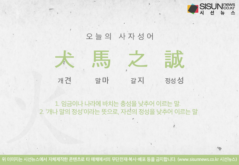 오늘의 사자성어 견마지성[犬馬之誠]입니다.