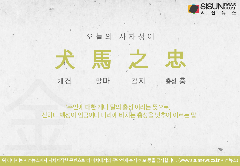 오늘의 사자성어 견마지충[犬馬之忠]입니다.