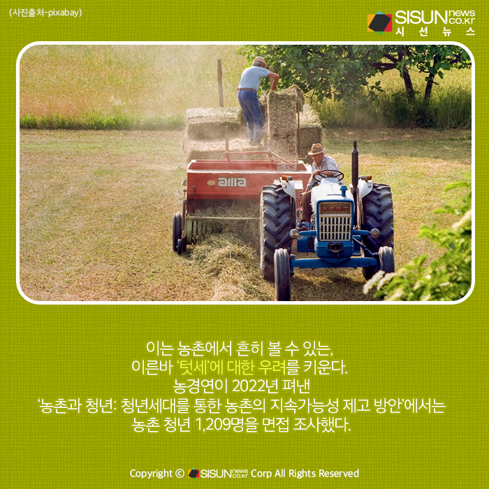 이는 농촌에서 흔히 볼 수 있는, 이른바 ‘텃세’에 대한 우려를 키운다. 농경연이 2022년 펴낸 ‘농촌과 청년: 청년세대를 통한 농촌의 지속가능성 제고 방안’에서는 농촌 청년 1,209명을 면접 조사했다. 그 결과 농촌 출신 귀촌 청년은 37.5%, 도시 출신 귀촌 청년은 34.2%가 텃세를 느꼈다고 답했다.