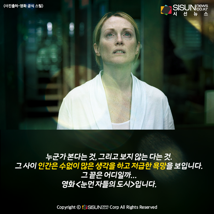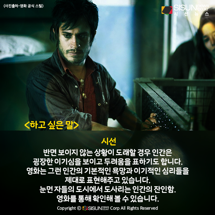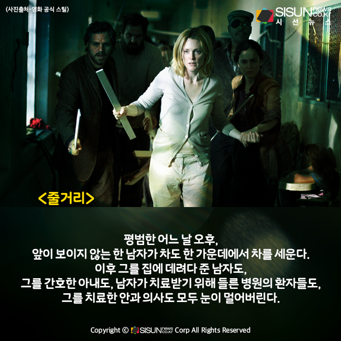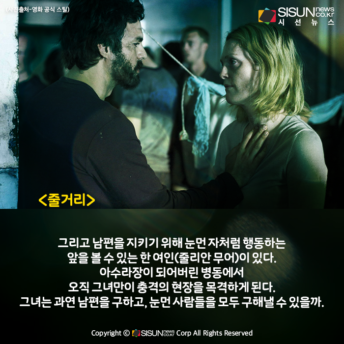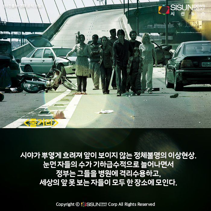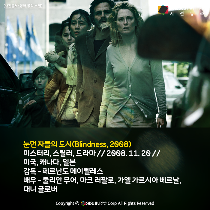 시선뉴스=박진아 기자ㅣ가족과 함께 할 때, 혼자서 울고 싶을 때, 사랑하는 연인과 로맨스를 한껏 더 즐기고 싶을 때, 당신은 어떤 영화를 선택하나요? 많은 영화들 속에서 결정을 내리기 어려운 당신에게 영화를 추천, 요리합니다. 오늘의 영화는 ‘눈먼 자들의 도시(Blindness, 2008)’입니다.