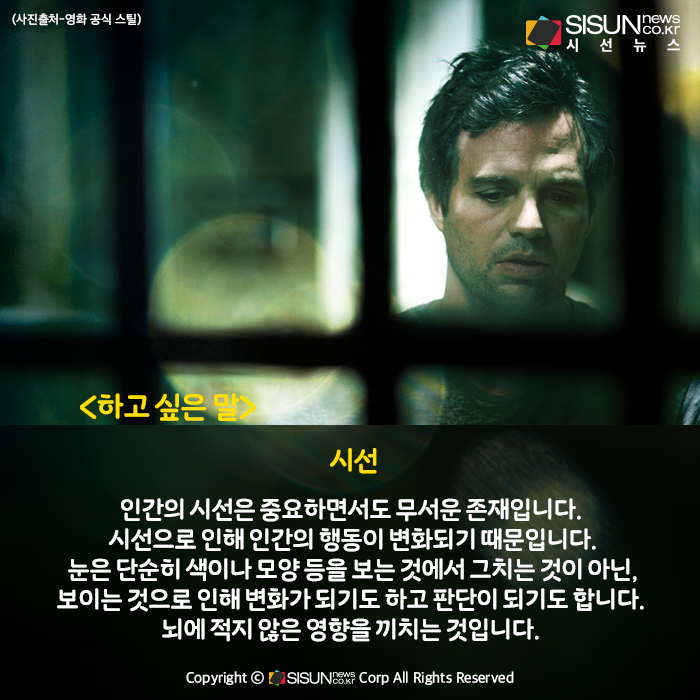 인간의 시선은 중요하면서도 무서운 존재입니다. 시선으로 인해 인간의 행동이 변화되기 때문입니다. 눈은 단순히 색이나 모양 등을 보는 것에서 그치는 것이 아닌, 보이는 것으로 인해 변화가 되기도 하고 판단이 되기도 합니다. 뇌에 적지 않은 영향을 끼치는 것입니다. 반면 보이지 않는 상황이 도래할 경우 인간은 굉장한 이기심을 보이고 두려움을 표하기도 합니다. 영화는 그런 인간의 기본적인 욕망과 이기적인 심리들을 제대로 표현해주고 있습니다. 눈먼 자들의 도시에서 도사리는 인간의 잔인함. 영화를 통해 확인해 볼 수 있습니다.