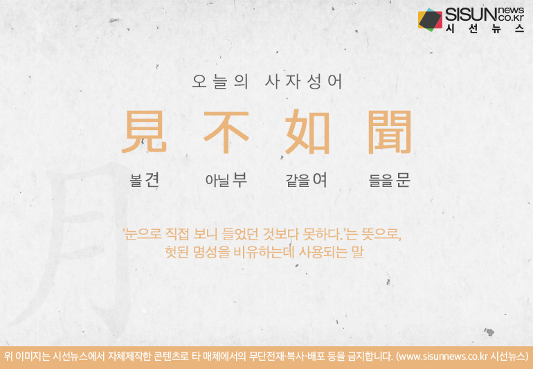 오늘의 사자성어 견불여문[見不如聞]입니다.