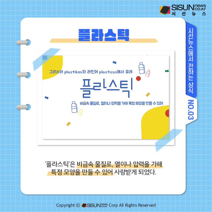‘플라스틱’은 비금속 물질로, 열이나 압력을 가해 특정 모양을 만들 수 있어 사랑받게 되었다. 플라스틱의 어원은 그리스어 ‘plastikos’와 라틴어 ‘plasticus’에서 유래했는데, 이는 ‘성형할 수 있는’, ‘거푸집으로 조형이 가능한’이라는 의미를 지니고 있다.