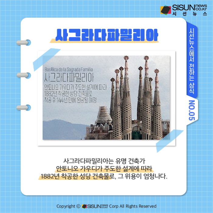 사그라다파밀리아는 유명 건축가 안토니오 가우디가 주도한 설계에 따라 1882년 착공한 성당 건축물로, 그 위용이 엄청나다. 규모도 규모지만 다양한 문제로 인해 건축 과정이 여전히 진행 중으로, 가우디는 1926년 사망했는데 당시 사그라다파밀리아는 불과 10~15% 정도만 완성된 상태였다. 특수성과 건축물의 규모와 아름다움으로 사그라다 파밀리아는 1984년 유네스코 세계문화유산으로 지정됐고, 이후 스페인의 유명 관광 명소 중 한 곳으로 이름을 떨치며 연간 500만명의 방문객을 끌어모으고 있다.