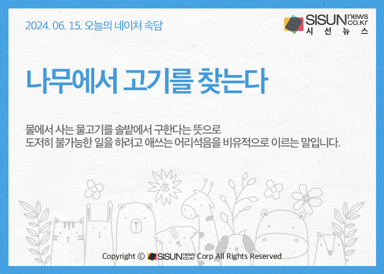 오늘의 네이처속담은 <나무에서 고기를 찾는다>입니다.