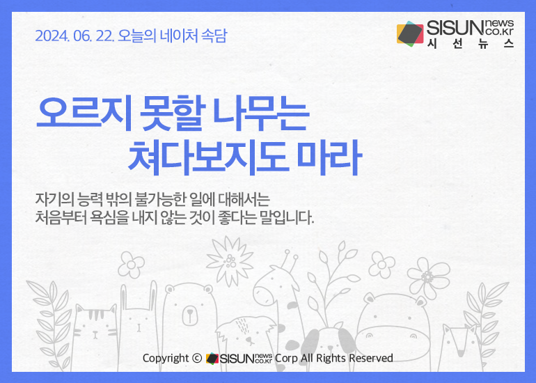 오늘의 네이처속담은 <오르지 못할 나무는 쳐다보지도 마라>입니다.