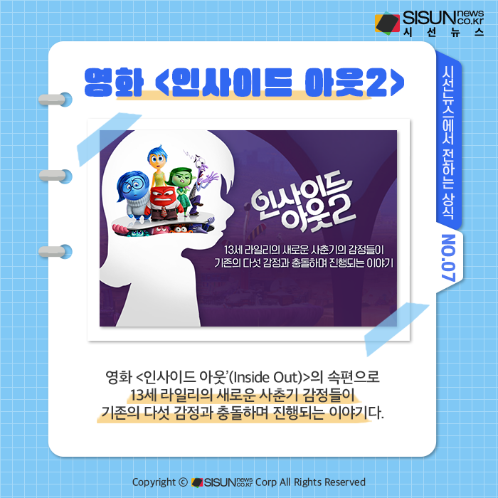 영화 <인사이드 아웃’(Inside Out)>의 속편으로 13세 라일리의 새로운 사춘기 감정들이 기존의 다섯 감정과 충돌하며 진행되는 이야기다. 새로이 등장한 사춘기의 감정들이 기존의 다섯 감정과 충돌하며 이야기가 전개된다.