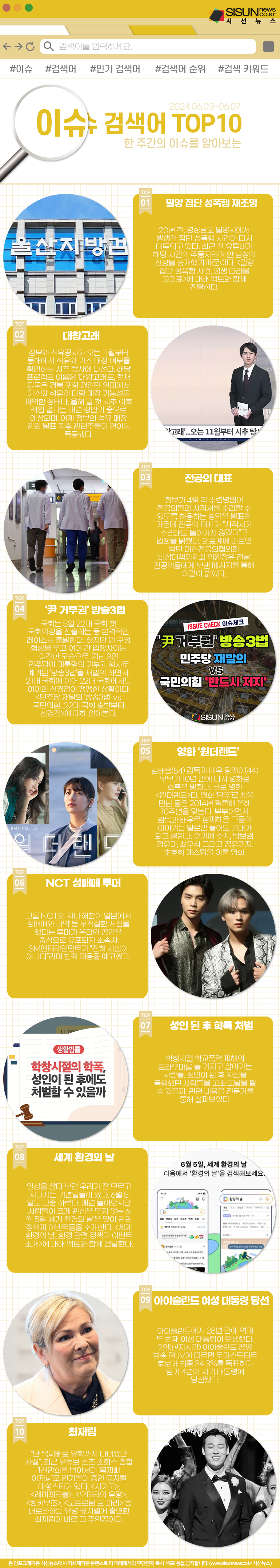 시선뉴스=박진아 기자 / 디자인=김선희 proㅣ지난주 한주간의 이슈 Top10입니다. 지난주에는 어떤 키워드들이 이슈가 되었을까요?