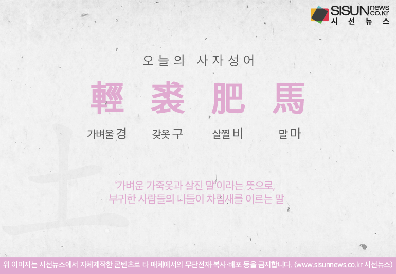 오늘의 사자성어 경구비마[輕裘肥馬]입니다.