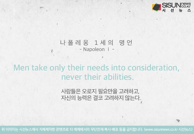 ‘사람들은 오로지 필요만을 고려하고, 자신의 능력은 결코 고려하지 않는다.’ <나폴레옹 1세>