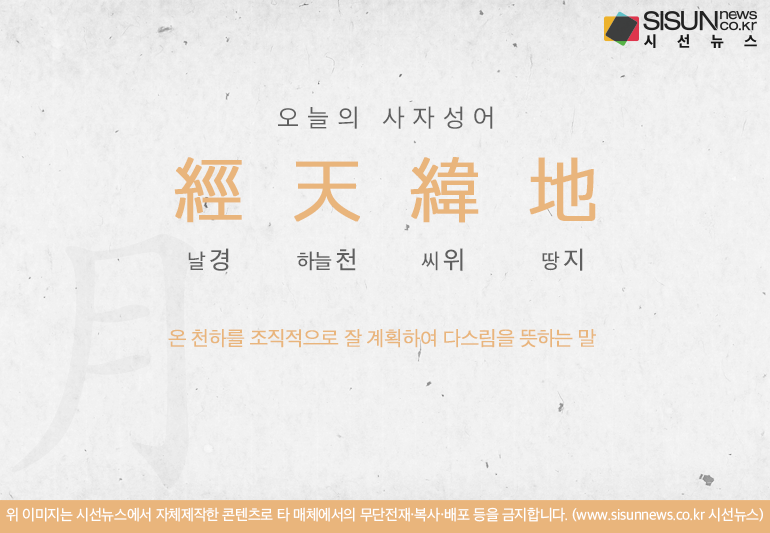 오늘의 사자성어 경천위지[經天緯地]입니다.