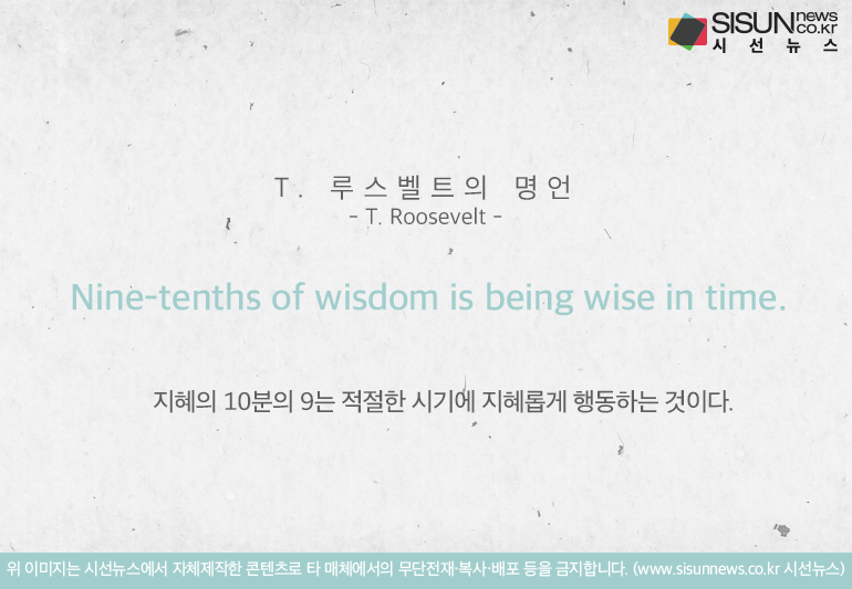 ‘지혜의 10분의 9는 적절한 시기에 지혜롭게 행동하는 것이다.’ <T. 루스벨트>