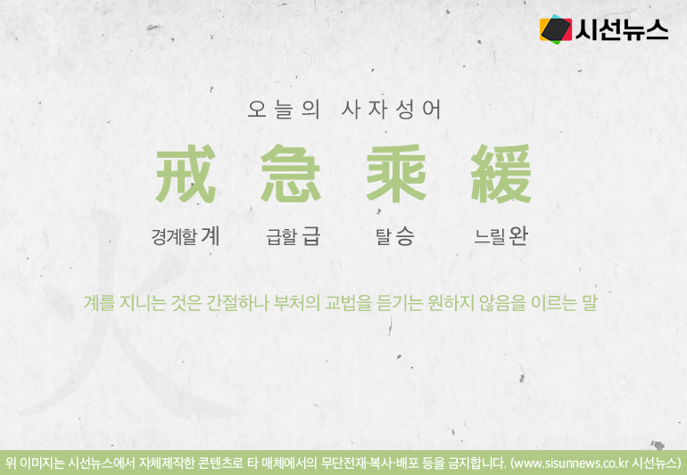 오늘의 사자성어 계급승완[戒急乘緩]입니다.