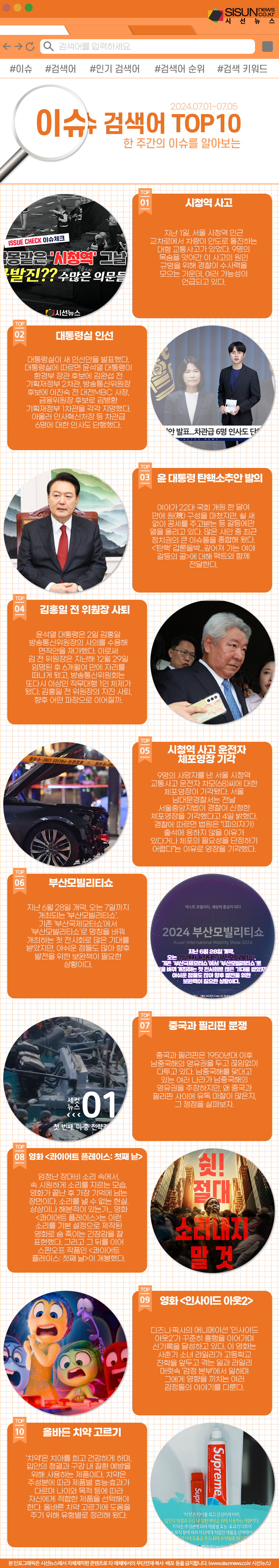 시선뉴스=박진아 기자 / 디자인=김선희 proㅣ지난주 한주간의 이슈 Top10입니다. 지난주에는 어떤 키워드들이 이슈가 되었을까요?