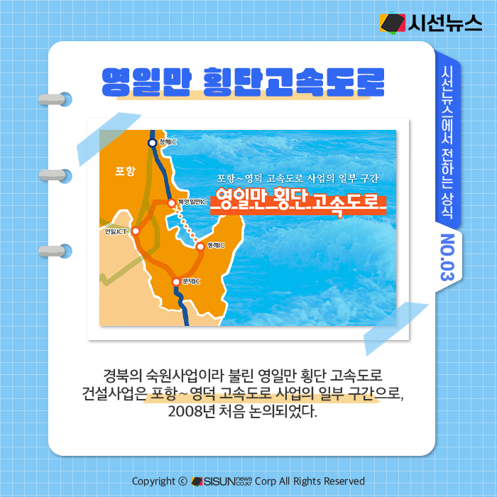 경북의 숙원사업이라 불린 영일만 횡단 고속도로 건설사업은 포항∼영덕 고속도로 사업의 일부 구간으로, 2008년 처음 논의되었다. 그러나 영일만 구간은 ‘경제성 부족’ 등의 이유로 약 15년 동안 보류되었다. 현재 영일만 구간을 제외한 나머지 구간은 건설 중이다.