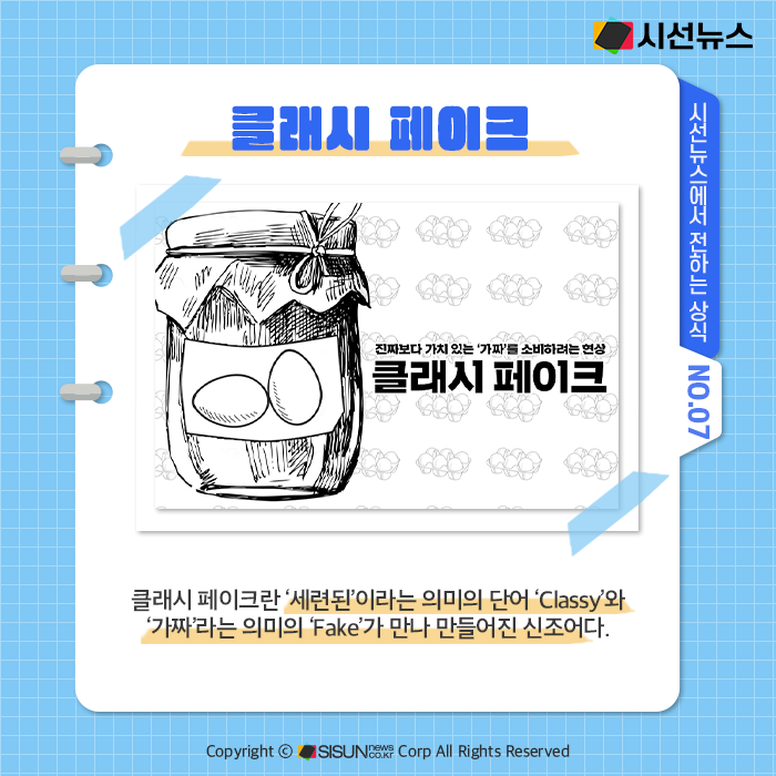 클래시 페이크란 ‘세련된’이라는 의미의 단어 ‘Classy’와 ‘가짜’라는 의미의 ‘Fake’가 만나 만들어진 신조어다. 창의성과 새로움이라는 가치에 집중해 오리지널, 진짜보다 가치 있는 ‘가짜’를 소비하려는 현상이다. 이러한 형태의 소비를 하는 사람들을 페이크슈머(Fakesumer)라고도 한다.