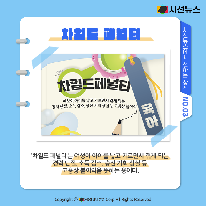 ‘차일드 페널티’는 여성이 아이를 낳고 기르면서 겪게 되는 경력 단절, 소득 감소, 승진 기회 상실 등 고용상 불이익을 뜻하는 용어다. 이 현상은 출산율 감소, 여성의 경제활동 참여 감소, 성별 임금 격차 확대 등의 원인으로 지목된다.