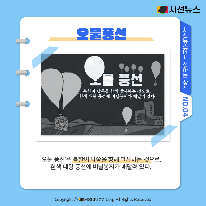 ‘오물 풍선’은 북한이 남쪽을 향해 발사하는 것으로, 흰색 대형 풍선에 비닐봉지가 매달려 있다. 봉투 안에는 거름·분뇨·폐건전지·담배꽁초 등 각종 오물이 담겨 있는 게 특징이다. 북한이 이렇게 오물 풍선을 보낸 건 2016년 이후 8년 만이다.