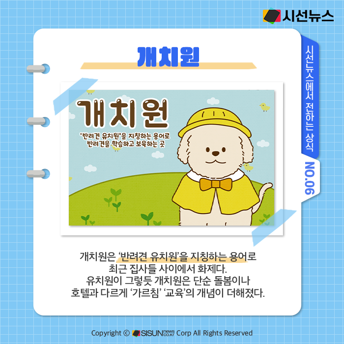 개치원은 ‘반려견 유치원’을 지칭하는 용어로 최근 집사들 사이에서 화제다. 유치원이 그렇듯 개치원은 단순 돌봄이나 호텔과 다르게 ‘가르침’ ‘교육’의 개념이 더해졌다. 실제 유치원과 같이 집사가 출근하는 시간에 등원시키고 퇴근하는 시간에 하원시키는 개념의 개치원이 속속 나타나는 가운데, 대부분 다양한 교육 프로그램과 선생님을 갖추고 원생들을 맞이하고 있는 것.