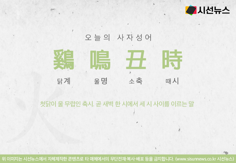 오늘의 사자성어 계명축시[鷄鳴丑時]입니다.