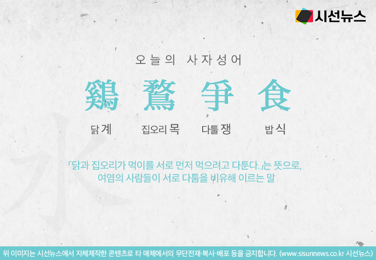 오늘의 사자성어 계목쟁식[鷄鶩爭食]입니다.