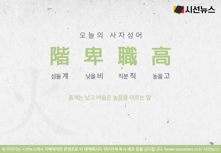 오늘의 사자성어 계비직고[階卑職高]입니다.