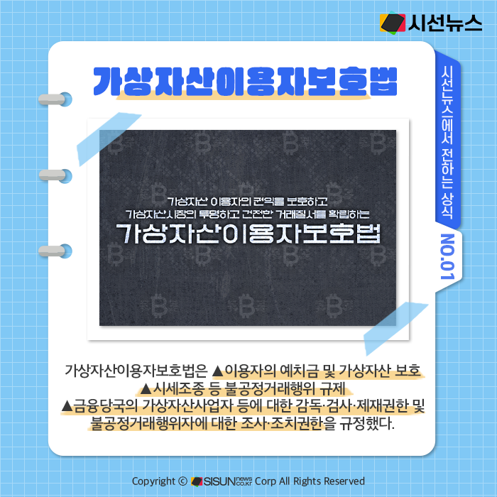 가상자산이용자보호법은 ▲이용자의 예치금 및 가상자산 보호 ▲시세조종 등 불공정거래행위 규제 ▲금융당국의 가상자산사업자 등에 대한 감독·검사·제재권한 및 불공정거래행위자에 대한 조사·조치권한을 규정했다. 이는 지난해 7월 18일 제정된 이후 하위규정 제정, 가상자산사업자의 법 시행 준비 등 1년의 기간을 거쳐 지난 19일 시행되었다.