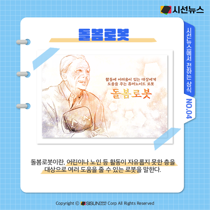 돌봄로봇이란, 어린이나 노인 등 활동이 자유롭지 못한 층을 대상으로 여러 도움을 줄 수 있는 로봇을 말한다. 마치 다양한 ‘돌봄’ 분야의 전문 인력처럼 인간과 유사한 신체를 바탕으로 노약자 또는 장애인 등에게 도움을 줄 수 있다.