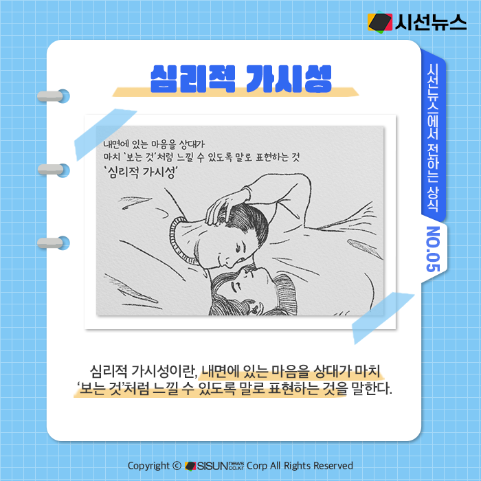 심리적 가시성이란, 내면에 있는 마음을 상대가 마치 ‘보는 것’처럼 느낄 수 있도록 말로 표현하는 것을 말한다. 흔히 ‘공감 말하기’ ‘공감 표현하기’ 등으로 표현되기도 한다. 상대의 어떤 말이나 행동에 공감하며 “아 그랬구나” “나도 미안하고 사랑해” 등의 말처럼 상대의 감정을 이해하고 그 감정에 대해 보이듯이 나의 마음도 표현해 주는 것이 기본적 심리적 가시성이라 할 수 있다.