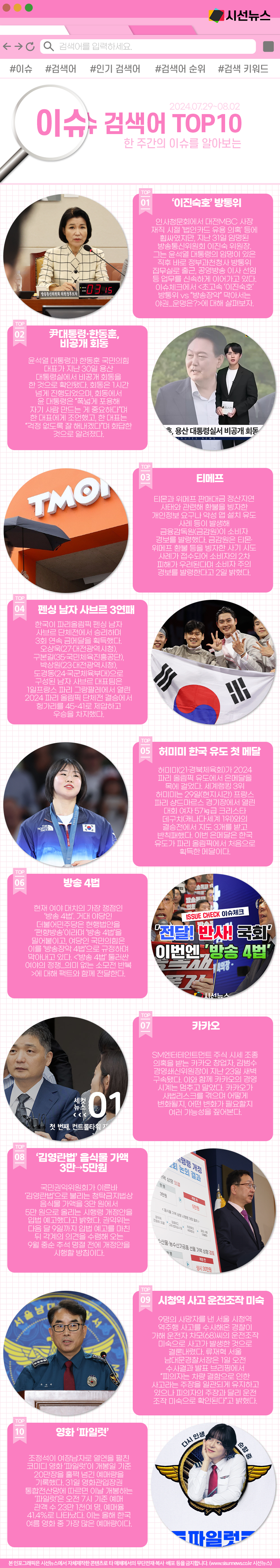 시선뉴스=박진아 기자 / 디자인=김선희 proㅣ지난주 한주간의 이슈 Top10입니다. 지난주에는 어떤 키워드들이 이슈가 되었을까요?