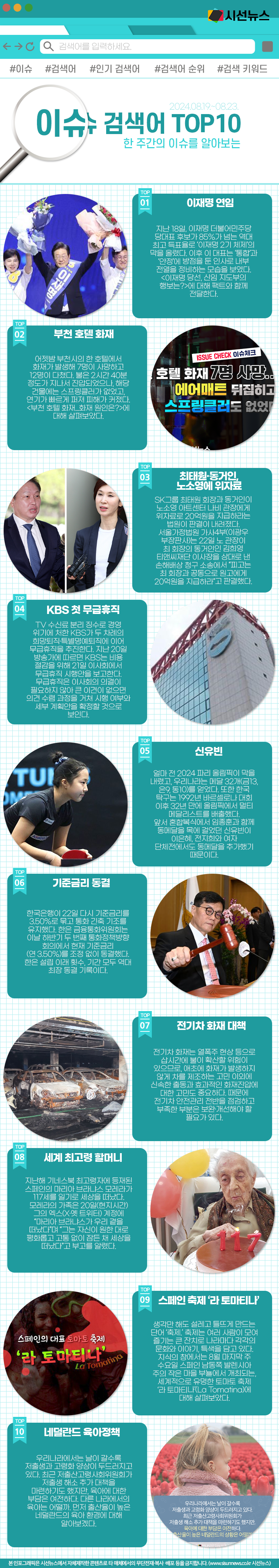 시선뉴스=박진아 기자 / 디자인=김선희 proㅣ지난주 한주간의 이슈 Top10입니다. 지난주에는 어떤 키워드들이 이슈가 되었을까요?