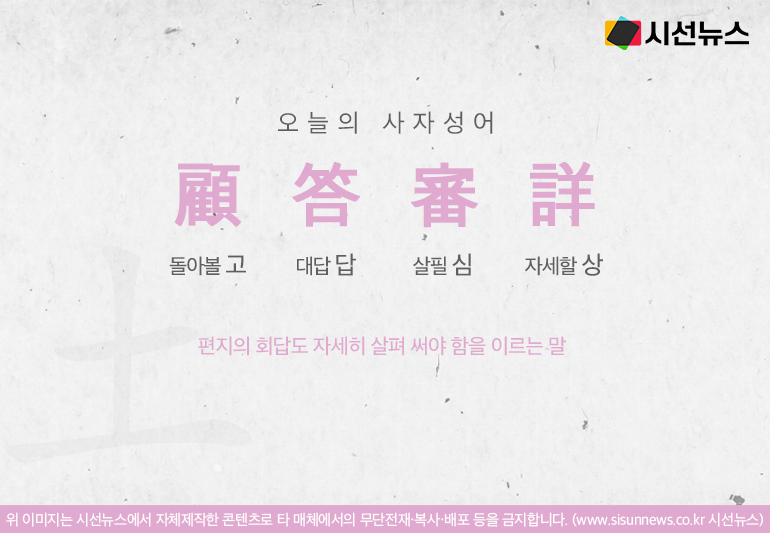 [돌아볼 고, 대답 답, 살필 심, 자세할 상]의 글자로 만들어진 사자성어 고답심상은 편지의 회답도 자세히 살펴 써야 함을 이르는 말입니다.